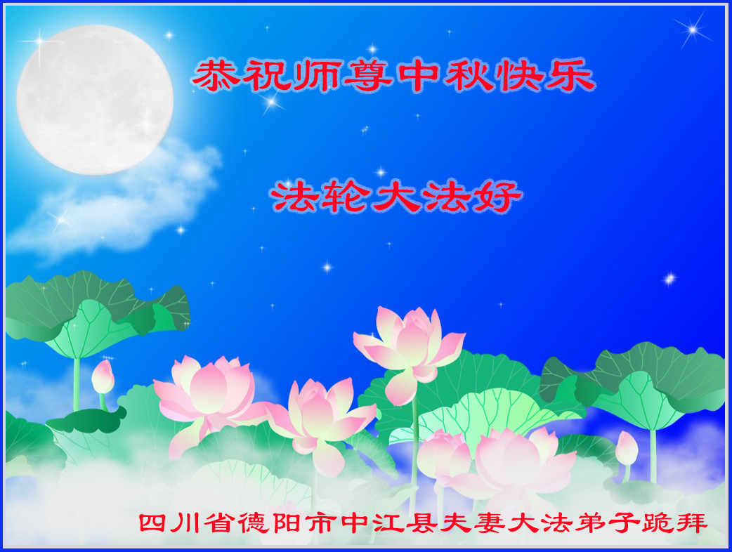 四川省德陽市中江縣夫妻大法弟子恭祝慈悲偉大的師尊中秋節快樂!