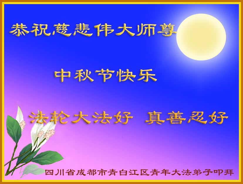 四川省成都市青白江區青年大法弟子恭祝慈悲偉大的師尊中秋節快樂!