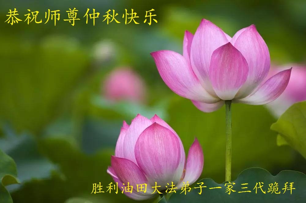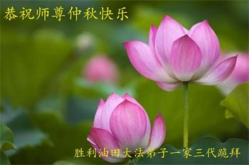 山東、勝利油田大法弟子一家三代人恭祝師尊中秋節快樂!