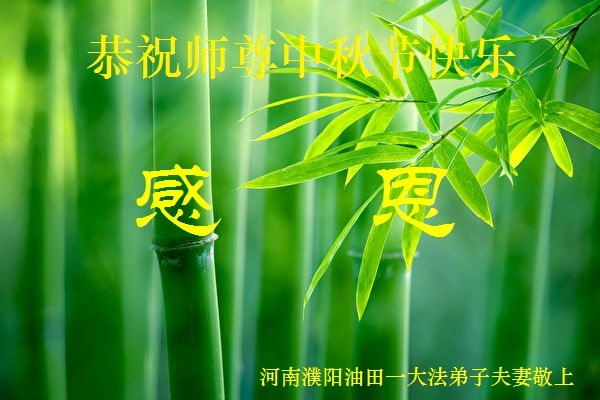 河南濮陽油田一大法弟子夫妻恭祝師尊中秋快樂!