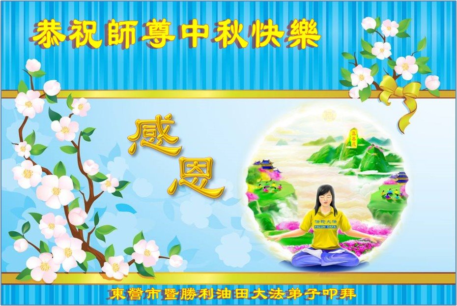 山東省東營市暨勝利油田大法弟子恭祝慈悲偉大的師尊中秋快樂!