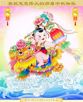 在這中秋佳節之際,我代表我們全家老少四輩在大法中修煉的弟子獻上對慈悲偉大的師父祝願!恭祝師父中秋快樂!叩拜師父救度之恩!