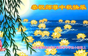 山東省鄒城市兗礦集團一老年學法小組大法弟子恭祝師尊中秋快樂!