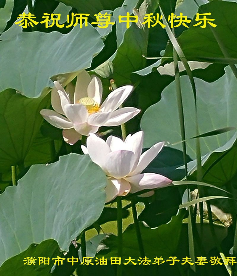 河南濮陽市中原油田一大法弟子夫妻恭祝師尊中秋快樂!