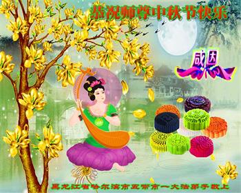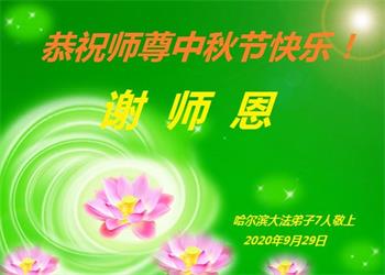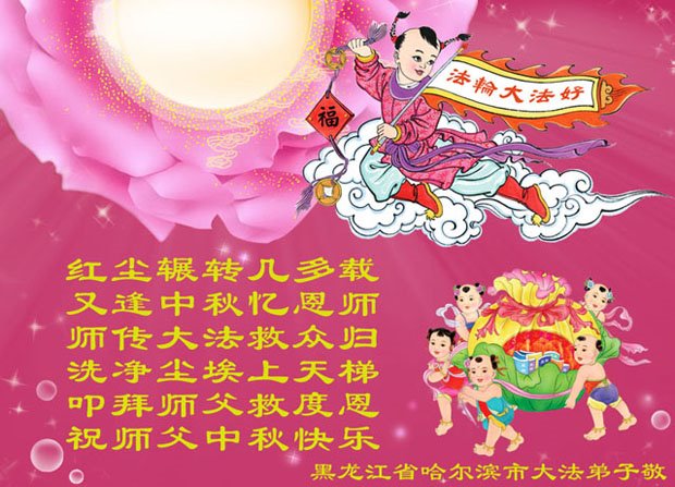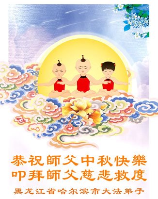 師父您好!中秋之際哈爾濱香坊大法弟子全家祝師尊中秋節快樂!