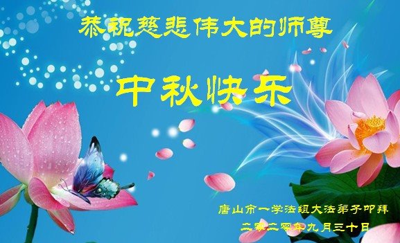 尊敬的師尊好!中秋節到了,我們唐山一學法小組全體學員恭祝偉大的師尊中秋節快樂!弟子們一定在最後緊跟師尊的正法進程,堅定正念,信師信法,做好三件事,跟師尊回家。全體學法小組學員叩拜師尊中秋節快樂!