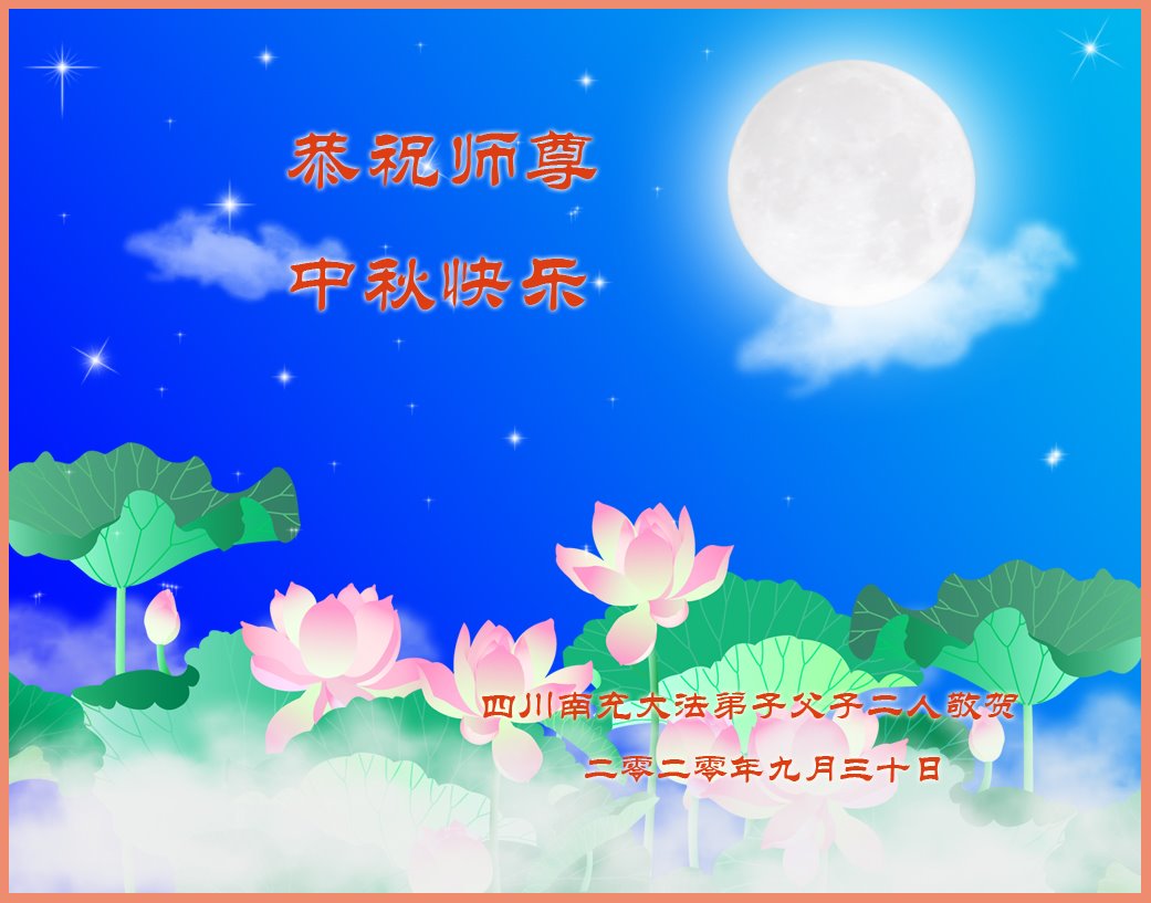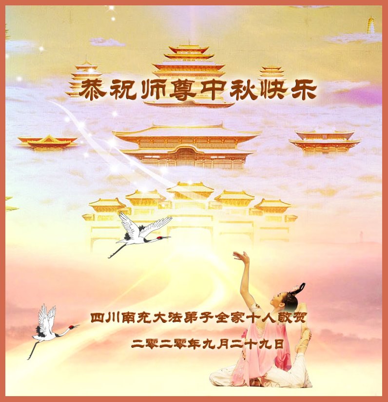 在中秋佳節即將到來之際,四川資陽一家三代三位大法弟子恭祝師尊中秋快樂!