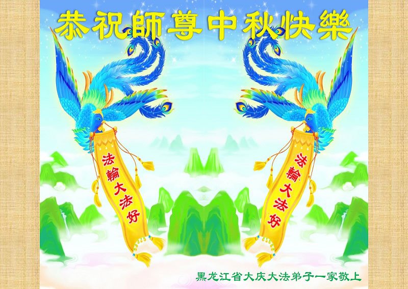 黑龍江大慶一家大法弟子祝賀師尊中秋快樂!