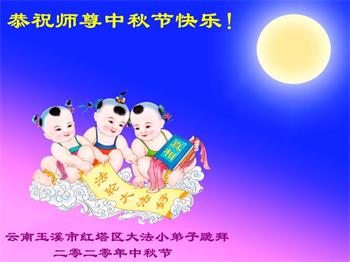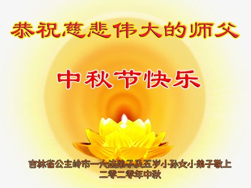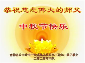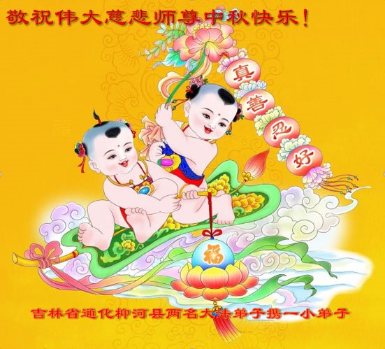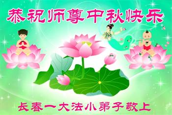恭祝慈悲偉大的師尊中秋節快樂!師父辛苦了!弟子無限感恩師父的慈悲苦度!請師父放心,在未來的日子裏,弟子更加努力做好三件事,救度更多的眾生,圓滿隨師還!兩名大法弟子攜一名大法小弟子敬上!