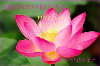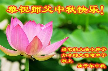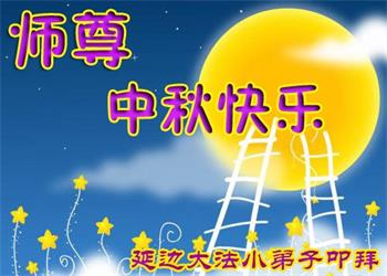 恭祝慈悲偉大的師尊中秋節快樂!師父辛苦了。中秋感恩師尊救度,弟子們身心受益,道德回升。弟子們一定要修好自己,法輪功學員小弟子以真、善、忍為做人原則,處處事事考慮別人,努力做一個對社會更好的人。精進實修,努力做好三件事,講真相,多救人。感謝師尊慈悲救度之恩。