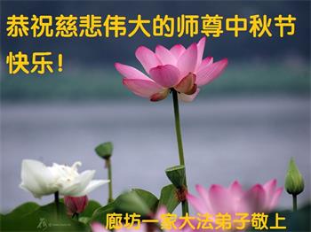 弟子用盡人間的語言也無法表達師尊的救度之恩。弟子只有在認真完成大法賦予的使命中做好三件事,學好法、多學法、遇事向內找、修好自己、多救眾生,修得執著無一漏,才能隨師把家還。再次恭祝師尊中秋節快樂!