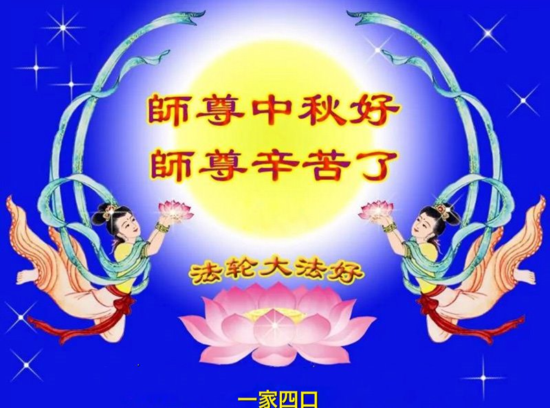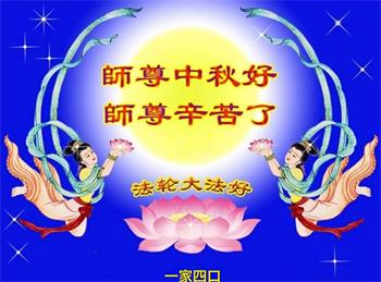 大陸一家四口大法弟子恭祝師尊中秋好!