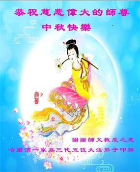 黑龍江省哈爾濱市三位大法弟子恭祝師尊中秋節快樂!
