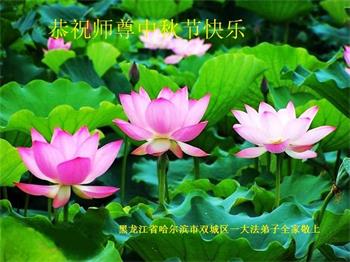 黑龍江省哈爾濱市雙城區一大法弟子全家恭祝師尊中秋節快樂!