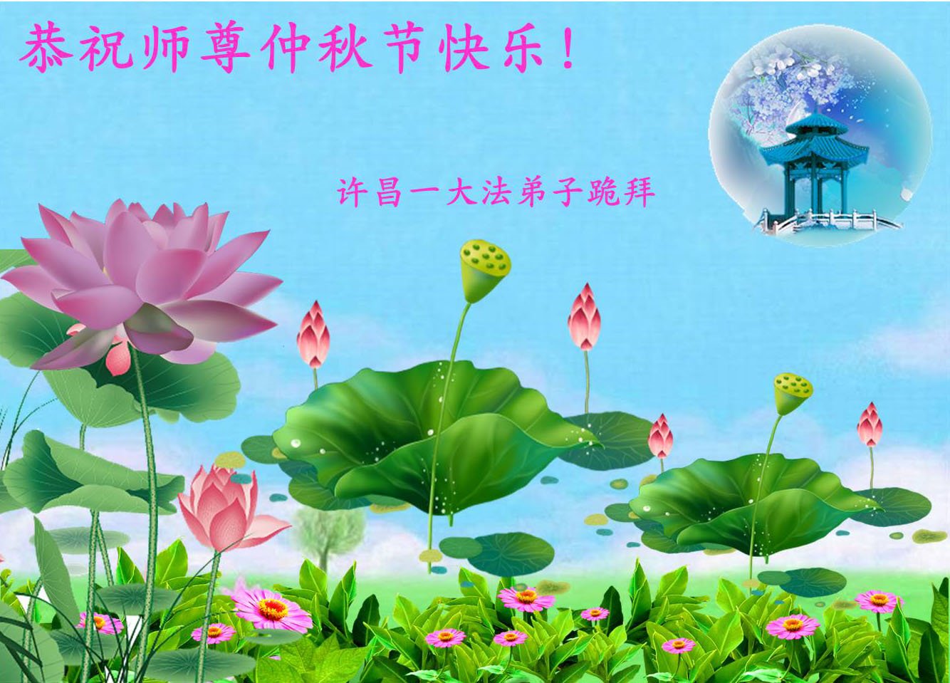 河南省許昌市一家大法弟子恭祝慈悲偉大的師尊中秋快樂!