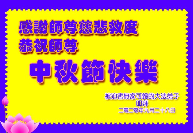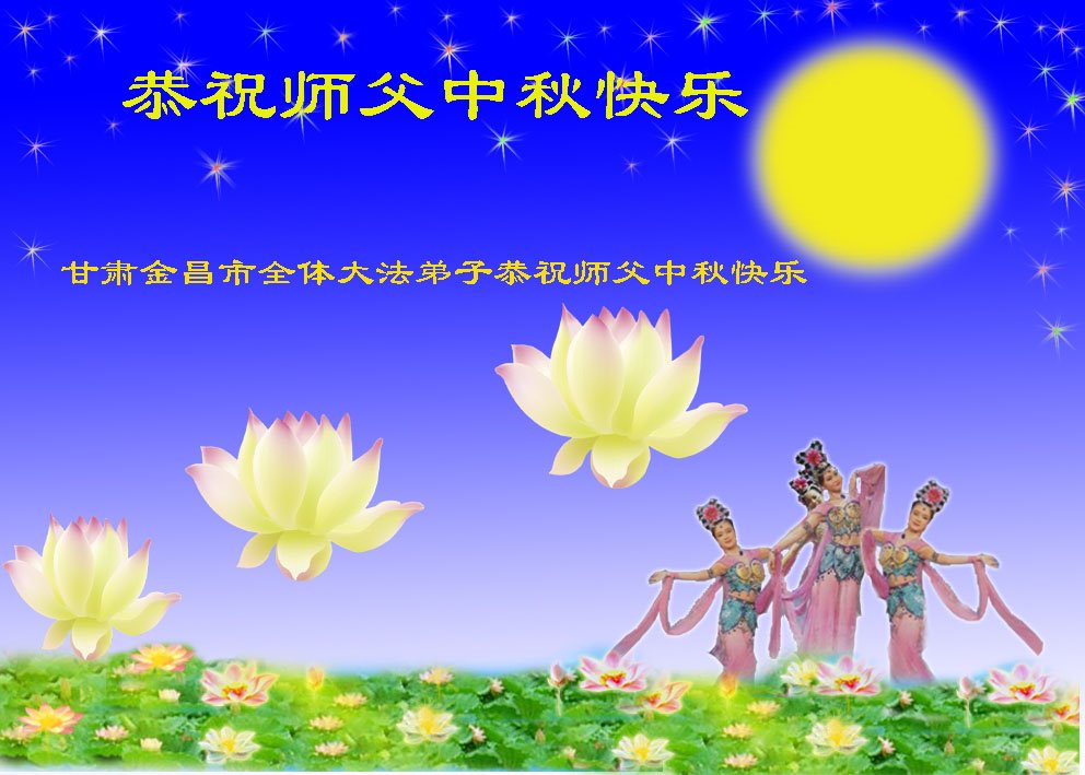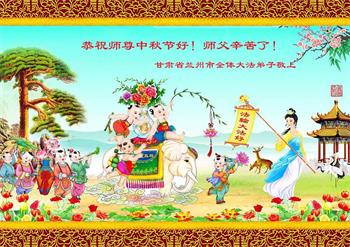 甘肅蘭州大法弟子感恩慈悲偉大的師尊帶我們返本歸真,感恩之心人間語言無以表述。在中秋佳節來臨之際,恭祝慈悲偉大的師尊中秋節快樂!
