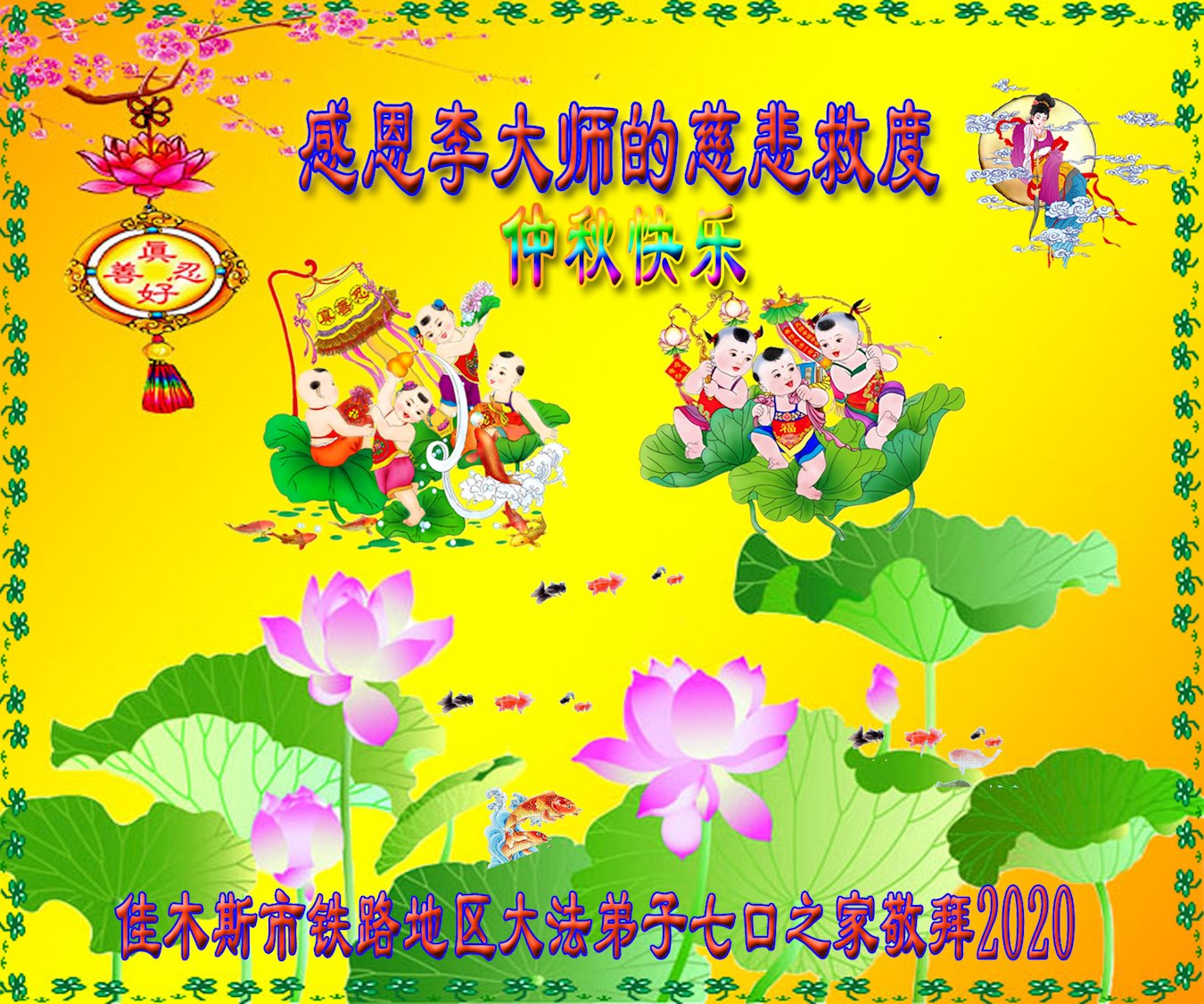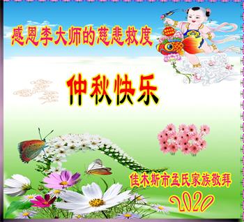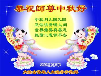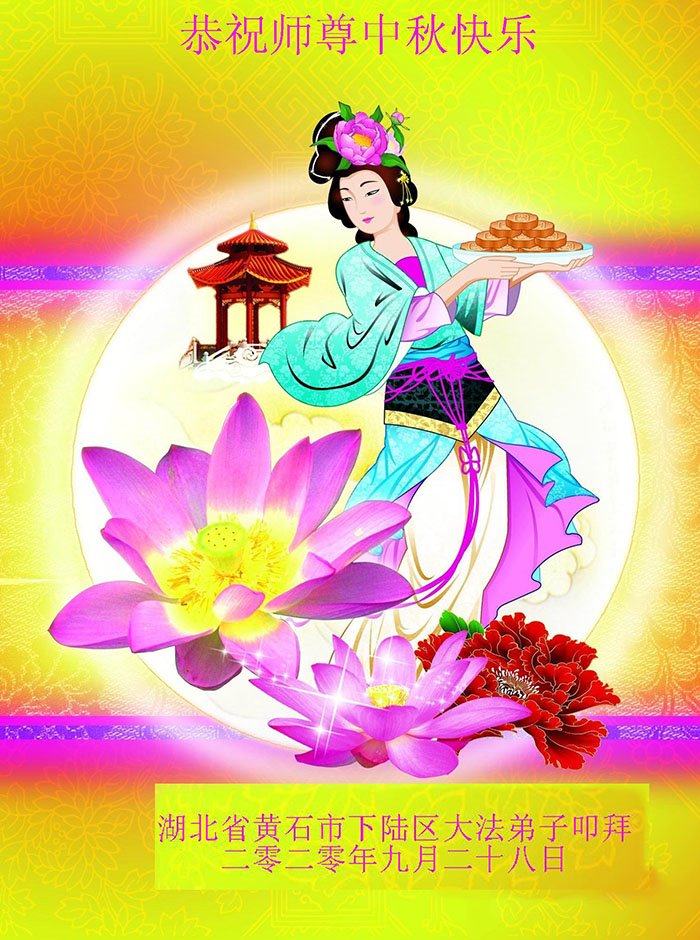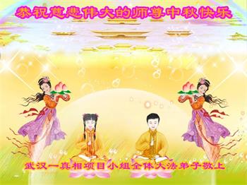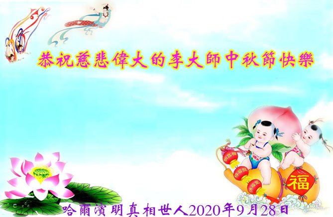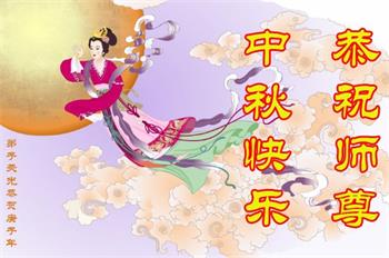 李大師中秋快樂!感謝您把法輪大法傳給眾生,感謝您的弟子不怕迫害,把大法真相傳給我們,使我們白明瞭真相。誠心敬念「法輪大法好,真、善、忍好」九字真言,使我們受益無窮。