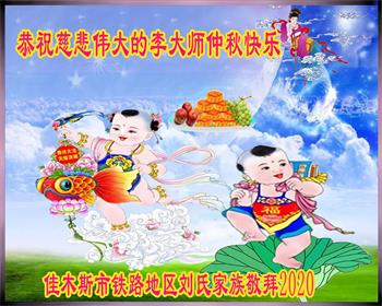 黑龍江佳木斯市明真相劉氏家族恭祝慈悲偉大的李大師中秋快樂!