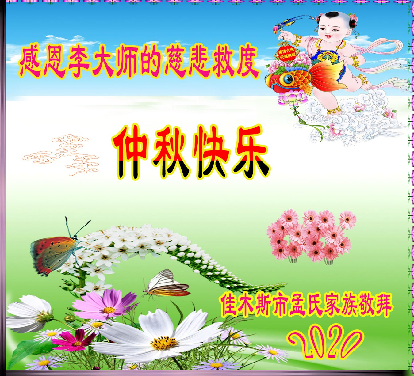 黑龍江佳木斯市明真相孟氏家族恭祝慈悲偉大的李大師中秋快樂!