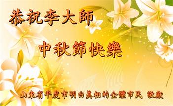 山東省青島市平度市明白真相的全體市民恭祝李大師中秋節快樂!