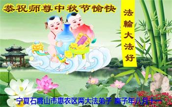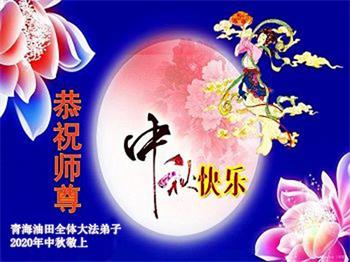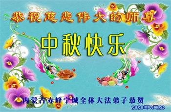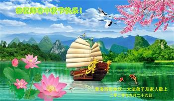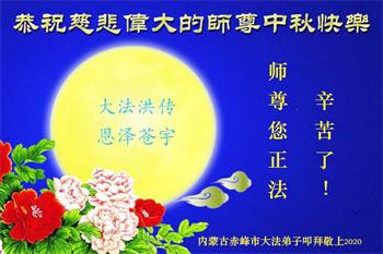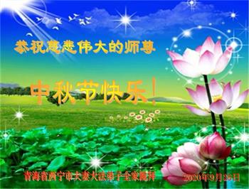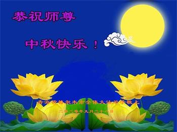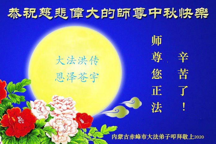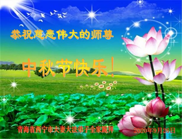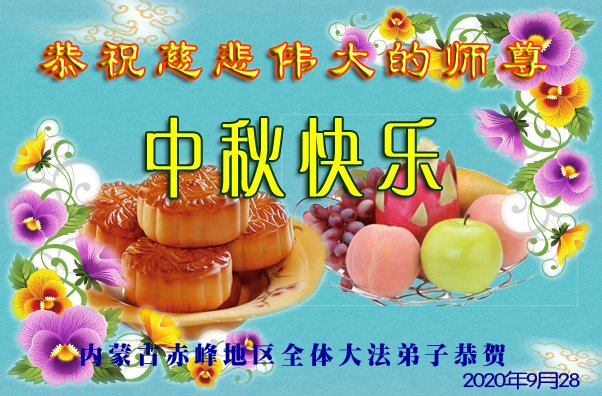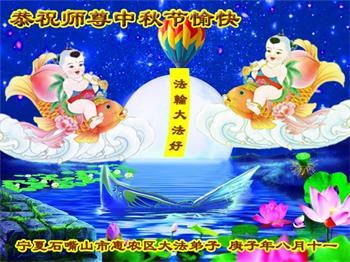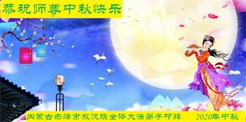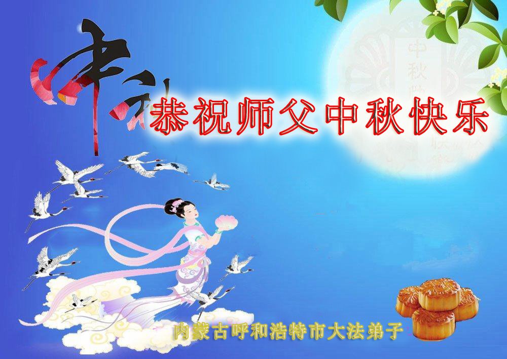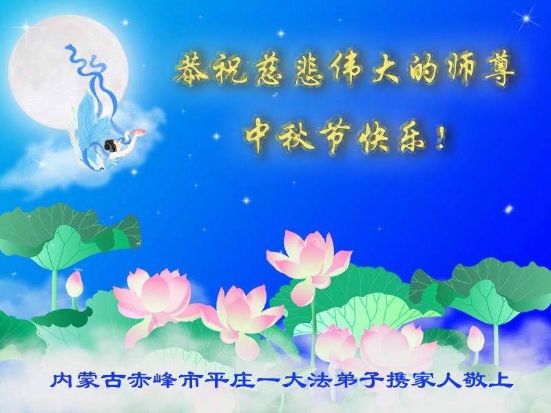 大法弟子代表家人丈夫、兒子、兒媳、孫子、孫女、向慈悲偉大的師尊問好!恭祝師尊中秋節快樂!謝謝合十!