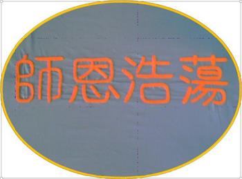 感恩師父苦度,感謝師父救度所有眾生!師父因為有您,我們才有明天的一切!用傳統刺繡,繡出『師恩浩蕩』,表達對師父的感恩。