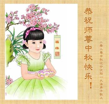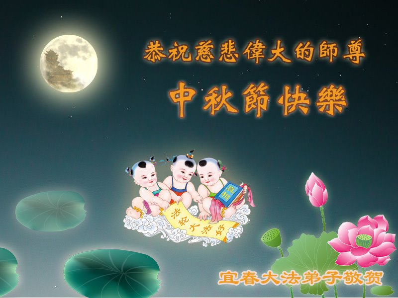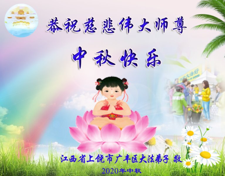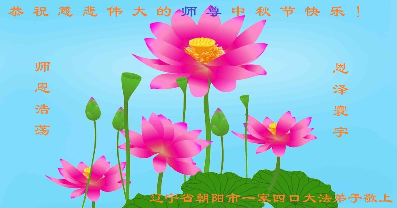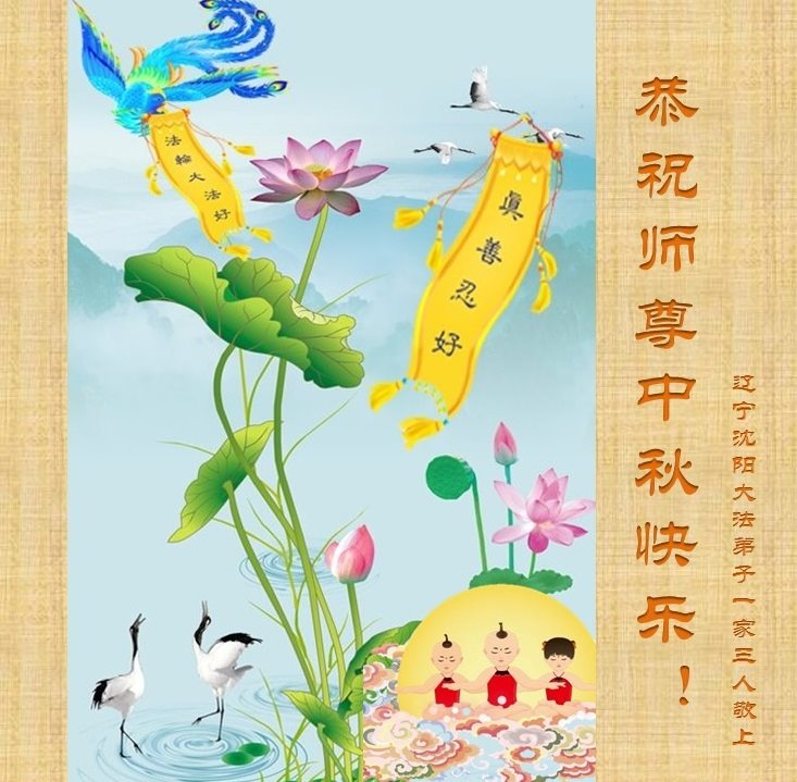 我們大陸大法弟子衷心的向師父問候:師父您好!恭祝師父中秋節快樂!師父您辛苦了!弟子與被救度的眾生感恩師父的慈悲救度!眾生們謝謝您!弟子唯一能讓師尊欣慰的就是修好自己,多救度眾生。敬請師尊放心,弟子們知道:在這十萬火急之時我們要當好主角,要用從大法中修出的慈悲與智慧做好師父要我們做好的三件事,加大力度搶救世人。兌現我們的誓約,喜迎恩師回故鄉與大陸的弟子團圓。