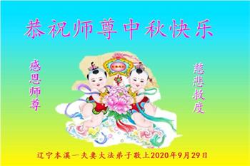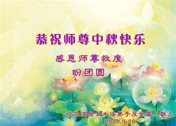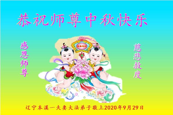在2020年的中秋佳節到來之際,我們一家四口恭祝慈悲偉大的師尊中秋節快樂!感謝師尊慈悲苦度。弟子一定遵照師父教誨,全身心做好三件事,學好法,講清真相,多救度眾生。讓師父多一份欣慰,少一份操勞。謝謝師父慈悲苦度,一家四口大法弟子向師父合十!