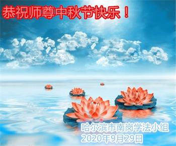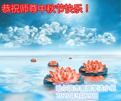 黑龍江省哈爾濱市南崗區學法小組大法弟子恭祝師尊中秋節快樂!