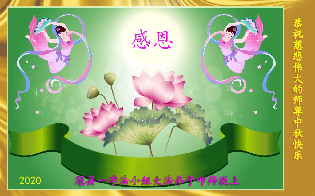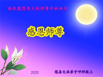 師尊好!師尊您辛苦了!2020年中秋節到來之際,我們感恩師尊在正法的路上對弟子們的一路保護,使我們在修煉的路上正念正行,助師正法,救度著眾生,走到了今天。我們銀灘全體大法弟子恭祝慈悲偉大的師尊中秋節快樂!
