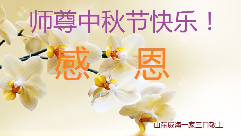 山東省煙台市招遠市一大法弟子全家恭祝師父中秋節快樂!感謝師父慈悲救度!