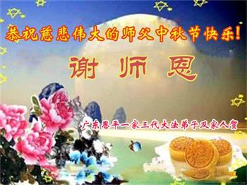 廣東佛山一大法弟子及家人恭祝師尊中秋節快樂!