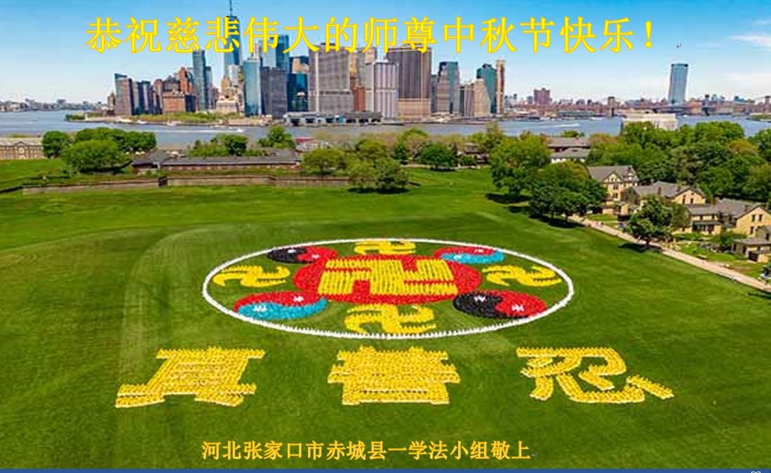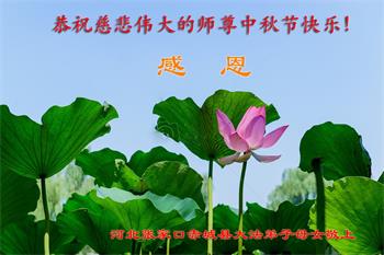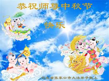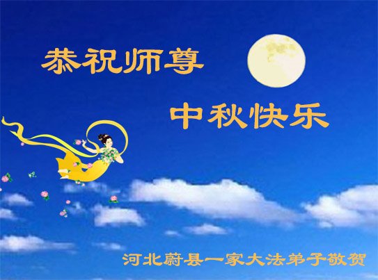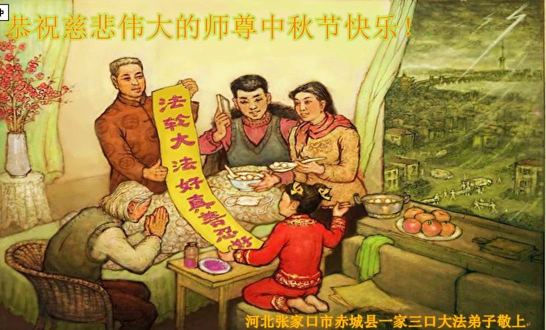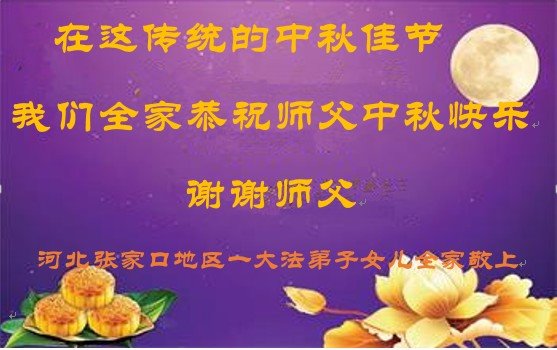 張家口市一家三口代表本市不能上網的大法弟子恭祝慈悲偉大的師父中秋節快樂!