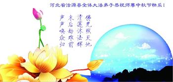 祝師父中秋節快樂!弟子等待著和師父團圓的那一天。謝謝師父救度之恩!弟子會有始有終的把師父交代的三件事做好,精進實修,遇到甚麼事,都要把自己當作一個煉功人,在心性上下功夫,向內找,修自己。