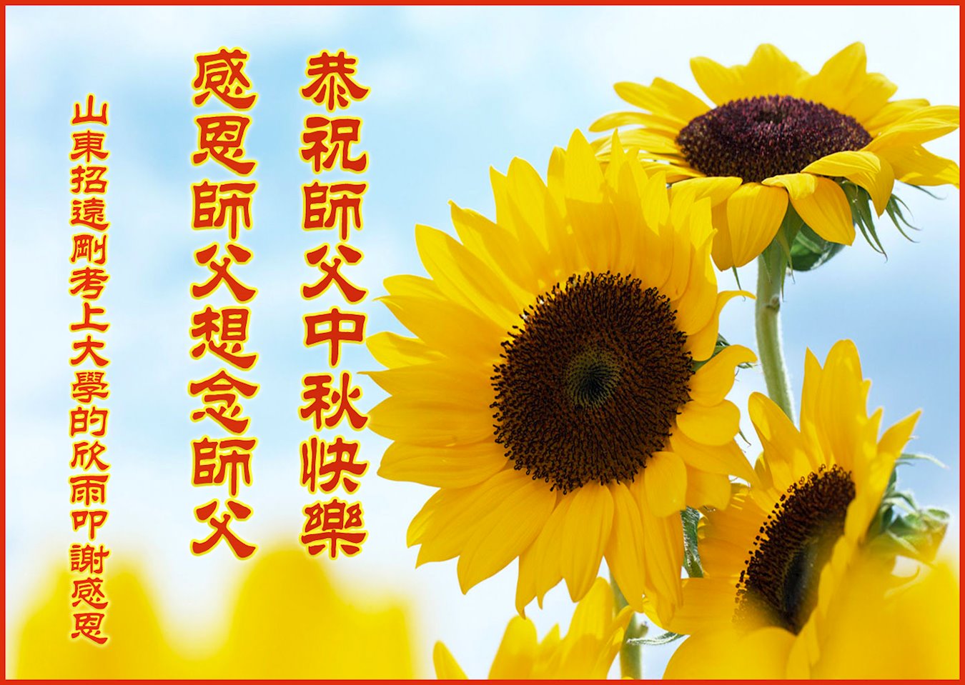 山東招遠今年剛考上大學的一位學生恭祝師父中秋快樂!叩謝感恩師父!