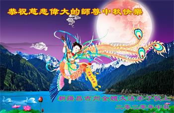 在中秋佳節之際,恭祝慈悲偉大的師尊節日快樂!更希望慈悲偉大的師尊能早日回到大陸,和大陸大法弟子團圓。
