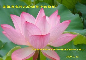山東省威海乳山市全體大法弟子攜明真相的家人恭祝師尊中秋節快樂!佛恩浩蕩,謝師恩!叩拜師父!