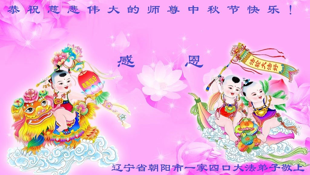 遼寧省朝陽市一家四口大法弟子恭祝慈悲偉大的師尊中秋節快樂!