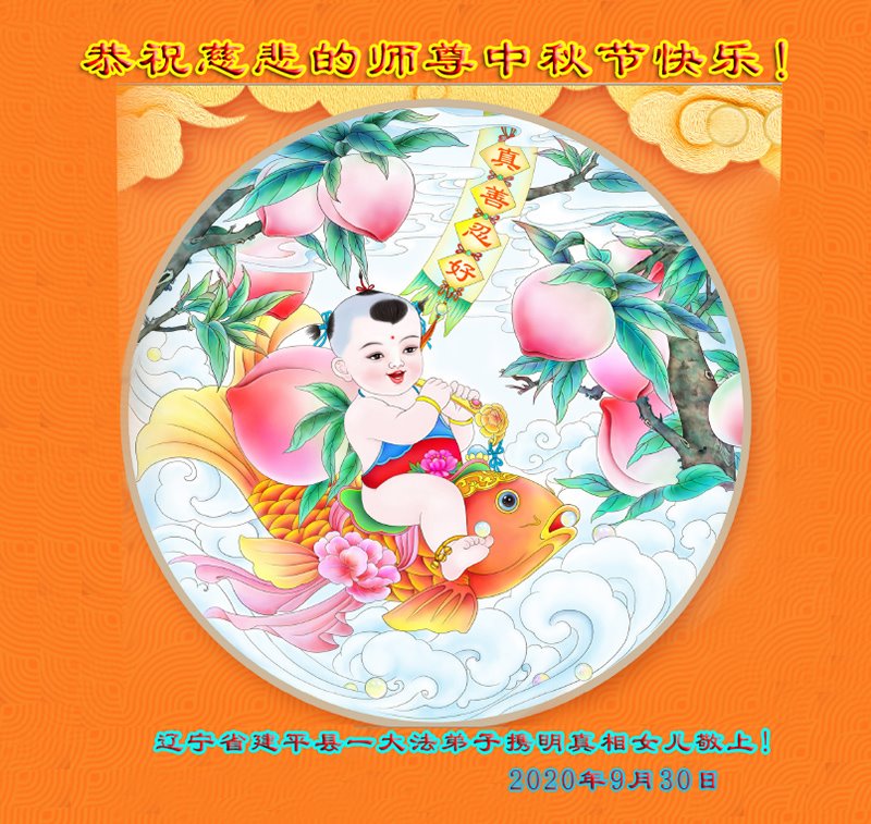 遼寧省朝陽市建平縣一大法弟子攜明真相女兒恭祝慈悲偉大的師尊中秋節快樂!
