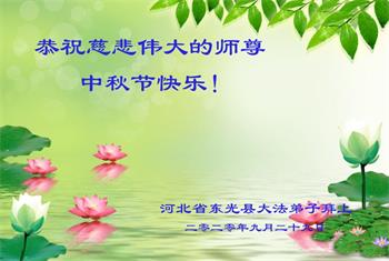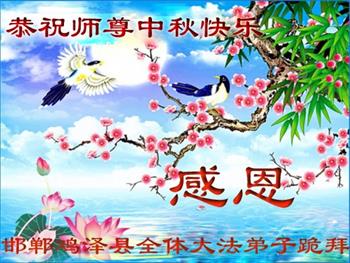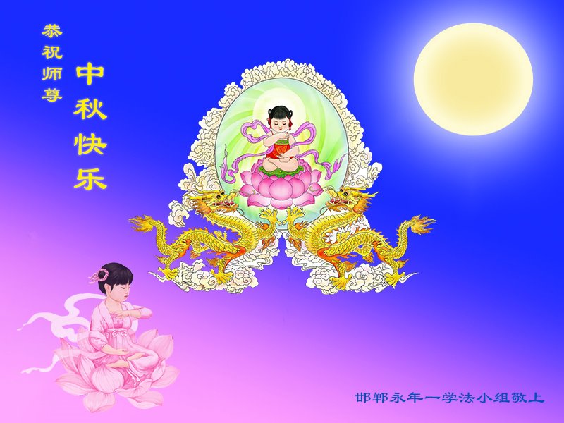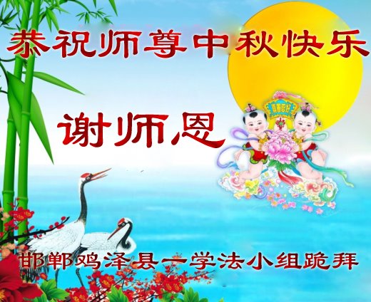 河北邯鄲大法弟子代表學法小組全體大法弟子及全家人恭祝慈悲偉大的師父中秋節快樂!
