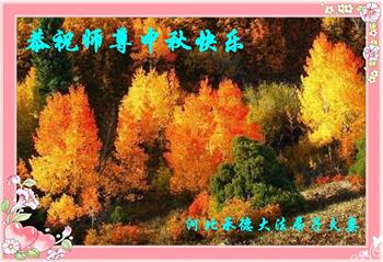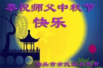又是一年中秋節到了,我代表我們的學法小組和我們全家的全體成員向慈悲偉大師父問好!在您的慈悲關懷下,正趕上中秋佳節,我放下了多年沒有意識到的包袱。請您放心,我一定會完成好您交給的三件事的兌現誓約的。祝您中秋節快樂!