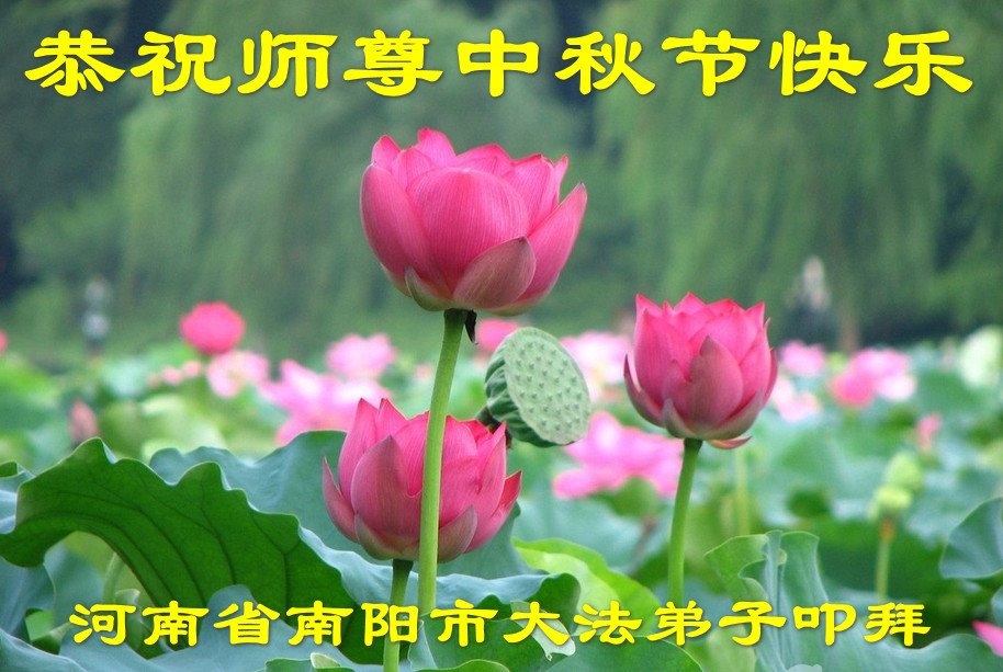 河南省南陽大法弟子恭祝慈悲偉大的師尊中秋節快樂!