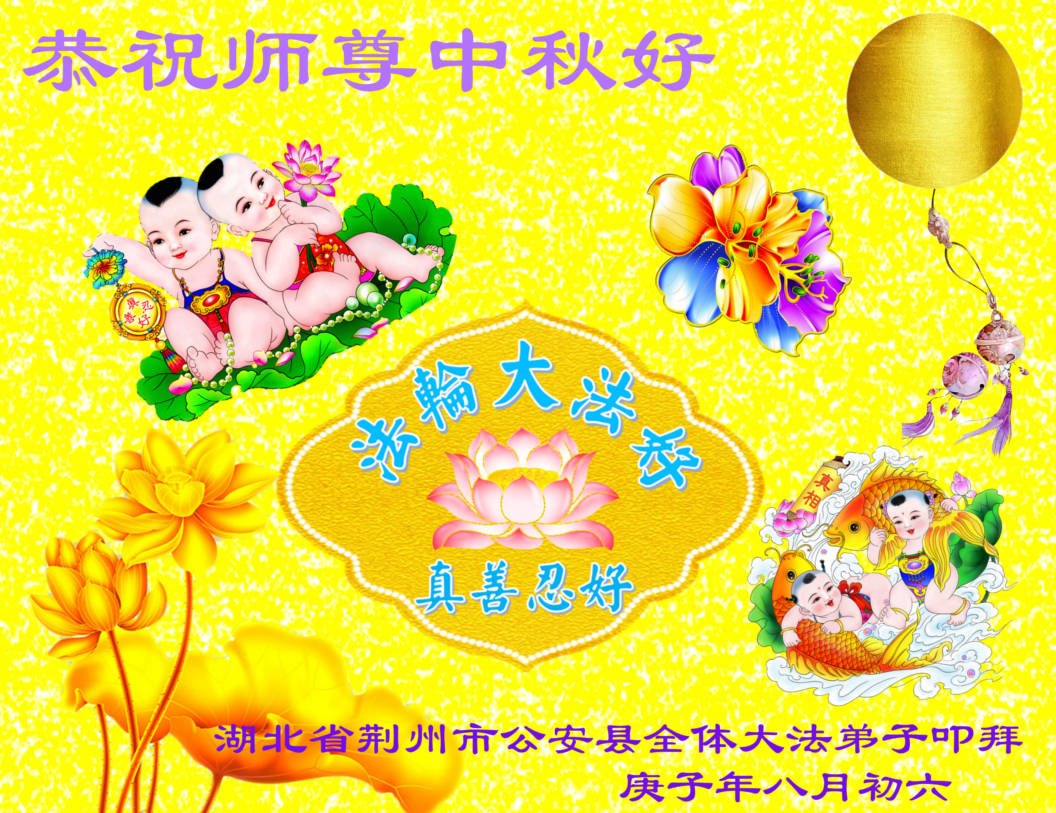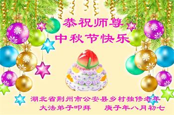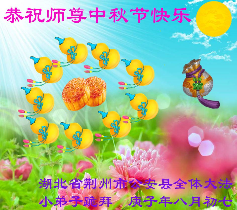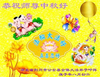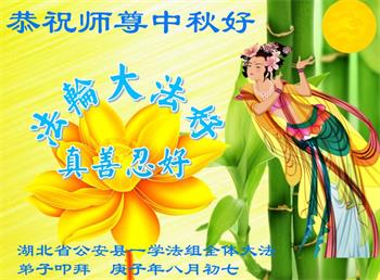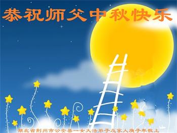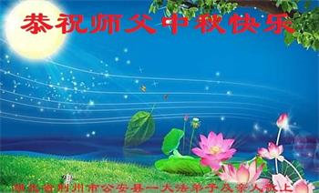 湖北省荊州市公安縣一大法弟子及親人恭祝師父中秋快樂!