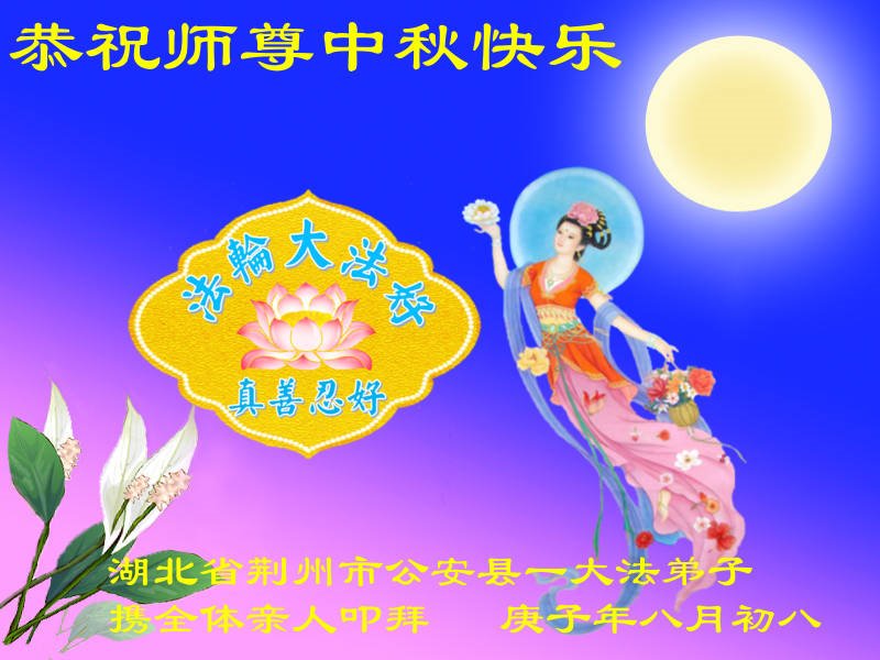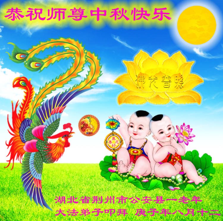 荊門市一大法弟子和家人祝師父中秋節快樂!感恩師父對弟子的慈悲苦度!感恩師父對弟子家人的慈悲保護!