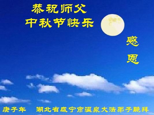大洋彼岸的大法弟子中秋節向您最崇敬的問候!祝您中秋快樂!願您少操勞,願您能輕鬆的過個中秋節。