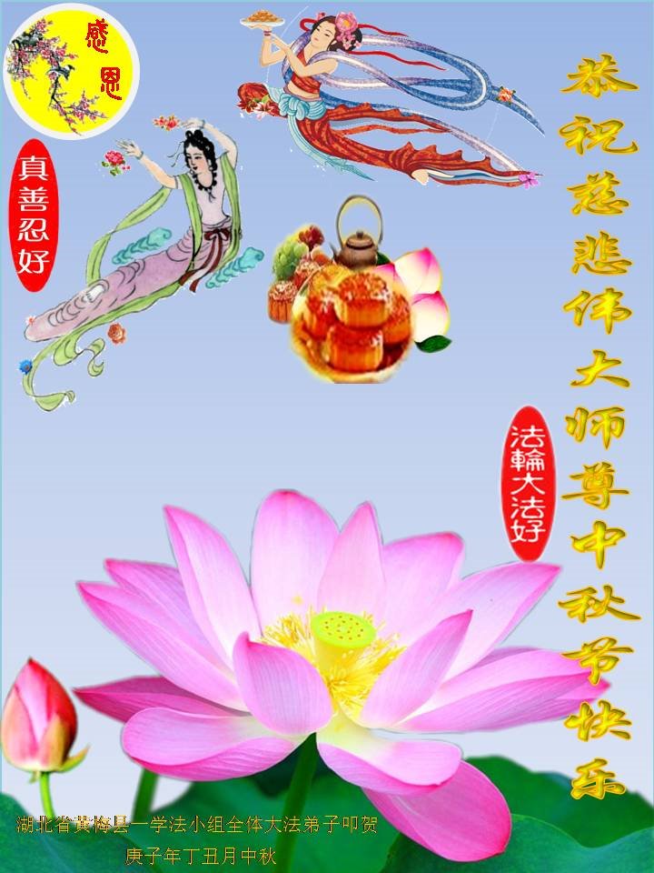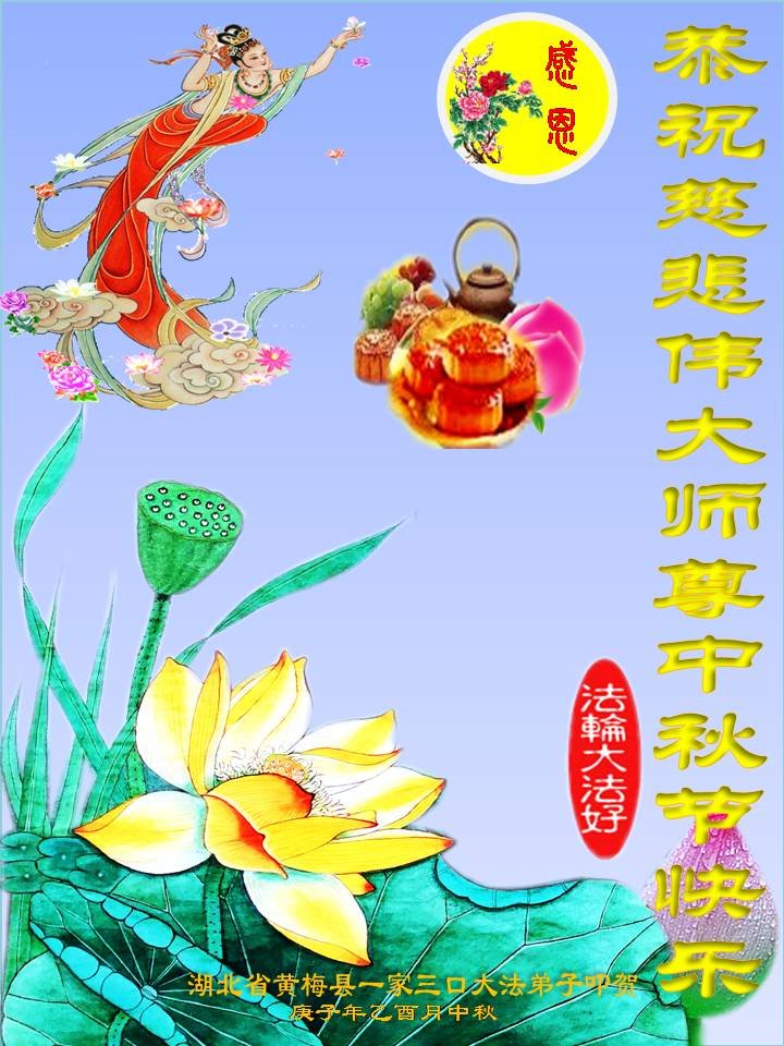 師父中秋佳節好!師父慈悲苦度眾生辛苦了!我們羅田縣全體大法弟子遙祝偉大的師尊中秋佳節快樂!