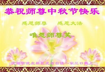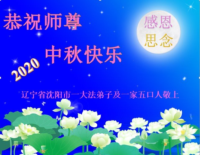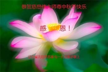 遼寧省瀋陽市皇姑區五口之家大法弟子,恭祝師尊中秋節快樂! 師尊您辛苦了。