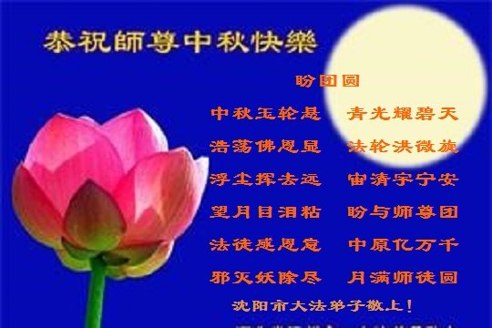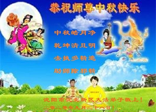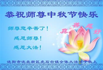 瀋陽市沈北新區虎石台鎮全體大法弟子恭祝師尊中秋節快樂!師尊您辛苦了!感恩師尊!感恩大法!