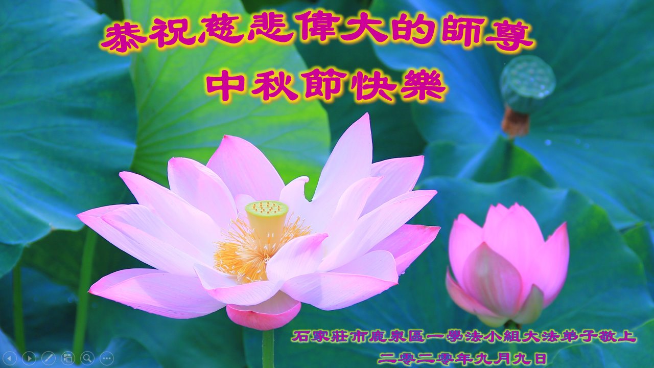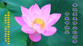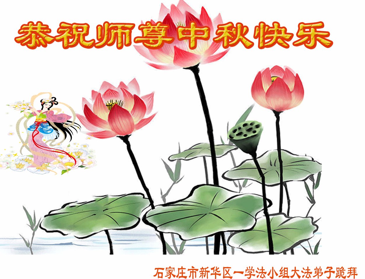 石家莊市新華區大法弟子恭祝師尊中秋快樂!弟子們想念師尊!弟子們叩拜師恩!千言萬語也表達不了對師尊的感恩!我們一定不負師尊重望,用實際行動做好三件事,修好自己,多救人,讓師尊多一份欣慰,少一份操勞,圓滿隨師還!謝謝師尊!謝謝師尊!謝謝師尊!