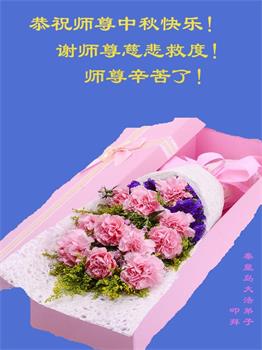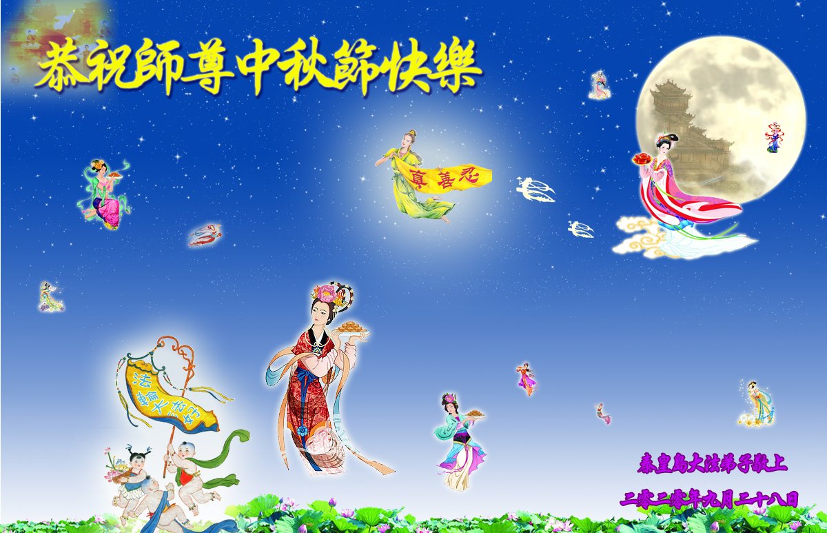 我們一定配合大法弟子廣傳真相、救度眾生,並按大法「真、善、忍」法理要求自己,重德向善,不辜負師尊的慈悲苦度!希望師尊早日回歸中土故鄉,謝謝師尊!再次祝師尊中秋節快樂!